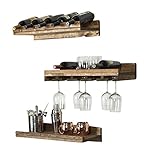 Multifunctional you can use this wall ledge to store bottles or you can display your favorite family pictures on top and glasses in bottom Make a statement by storing up to 3 wine bottles and 4 wine glasses depending on the size Comes in the perfect size with a 17 inches length 4 inches width and a 15 inches height this amazing farmhouse chic bar storage creates a beautiful home decor on any wall space with ease