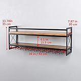 MBQQ - Wine rack size length 236 x height 102 x depth 787thickness of wood 078in Industrial style this wine rack consists of hard iron and baking finish reclaimed wood Space saver space saving way to store wine and stemware with integrated storage shelfIt is enough to make room inside your cabinets on your counter top and in your pantry closet Easy to install the shelf design increases storage space With the instructions easy to installThe wine holder can be installed in the kitchen dining room or wherever you want to enjoy a deliciously fresh bottle