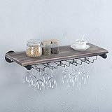 KINGVON - Integrated wine rackwith 5 stem glass holder gives you plenty of room to store wine wine glasses and other accessories Industrial styleindustrial iron and baking varnish reclaimed wood Sizelength 24 x depth 98 inThe thickness of the board 078 in Perfect giftthis wine rack is perfect for the kitchenliving roomdining room and it is also a gift for wine lovers Easy to assemblewith the instructions but the product is heavy the assembly requires two people to collaborateThe stemware hanger is preinstalled to make assembly easier and faster
