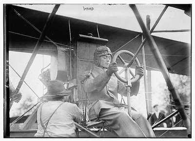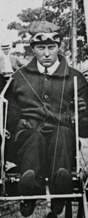 Jimmy Ward (above), the ex-jockey who had the good sense to drop out of the Hearst race, suffered a great tragedy. His wife Maude Mae died in a hotel fire, and Jimmy was so devastated he lost his mind and never got it back. Eventually Glenn Curtiss helped him get admitted to a Florida mental hospital. He died there in 1923, at the age of 37. He was buried in an unmarked paupers grave. Some of his fellow aviation pioneers collected money to give him a more respectful funeral, but I can find no record of that ever happening.
