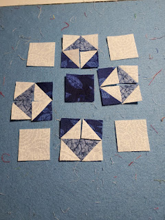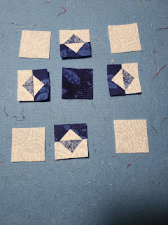 I got the next block ready to sew together. That meant making and trimming all the half-square triangles. Hey - I can see the light at the end of the tunnel on this project.