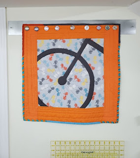 To make M happy, I centered the little quilt on the metal hanger. Yes - it does look better.