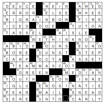 62. Bosc or Anjou: PEAR. Bosc and Anjou are a PAIR of PEARS.
