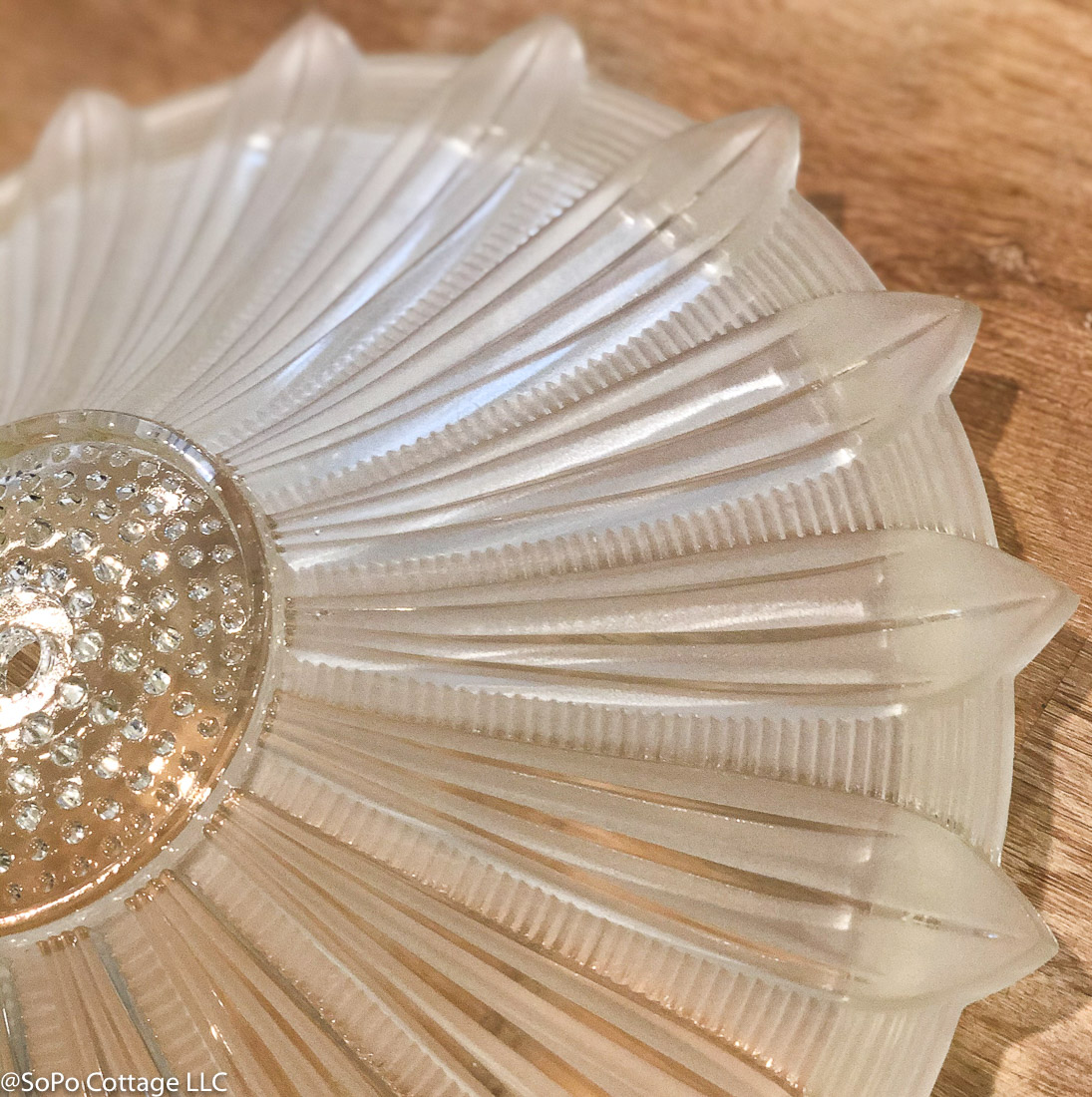 For the existing bedrooms, I came across these fantastic glass shades on Etsy. Don't you love the sunflower style? They're super heavy with both frosted and shiny glass elements. I don't know how old they are, but they have that vintage charm I was looking for.They came from different sellers - one with mounting hardware, the other sold just the shade. But I knew Brian at the Lamp Repair Shop in South Portland could help me. He crafted another hanger, so both lights will look the same.